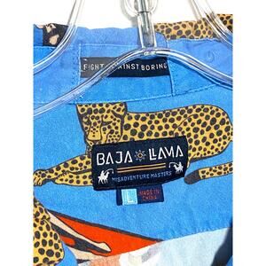 Baja Llama Purrfect Woman Leopard Blue Nighthawk Button Shirt Mens L Viscose