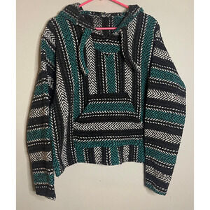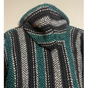 Baja Mexican Poncho Green Hoodie Surfer Skater Rug Jacket Unisex Medium