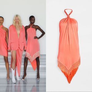Baja East Open Back Halter Beaded Fringe Wild Dress Pink Size 2