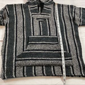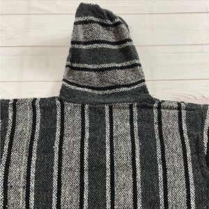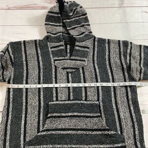 Baja Mexican Style Poncho. Unisex. Black, gray and white. Kangaroo pocket in front. No size. Please see measurements. S-1540