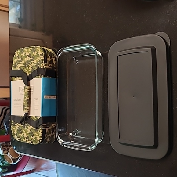 3 Pieces, rectangular glass casserole dish w/camouflage insulated carrier case, dishwasher and microwave safe, pre-heated oven safe, freezer safe
