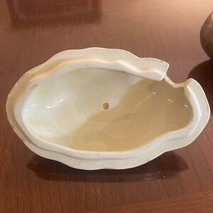 The perfect gift for your baked potato lover. Vintage Ceramic Baked Potato Dish Lidded Sour Cream/topping holder. No Spoon approximately 6 inches long x 3.5 inches wide and 4.5 inch tall with lid on. No chips. No cracks.