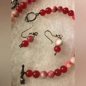 Bakelite Vintage 1940s Marbled Cherry/Vanilla Necklace Earrings Bracelet Set