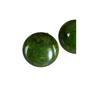 VTG Bakelite Green Yellow Marble Swirl Bakelite Earrings Screw back TESTED with Simichrome size 24.4mm