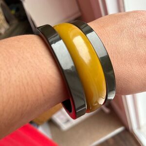 These are a set of three vintage Bakelite bracelets. They have been tested and are in good vintage condition.