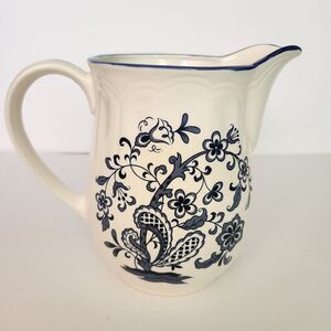 Baker Hart & Stuart Blue Garden Pitcherwhite with blue floral pattern, no chips or cracks or grazing