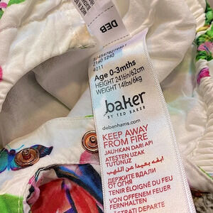 Baker by Ted Baker Tropical Print Baby Bubble Romper with Pink Bows on Shoulders