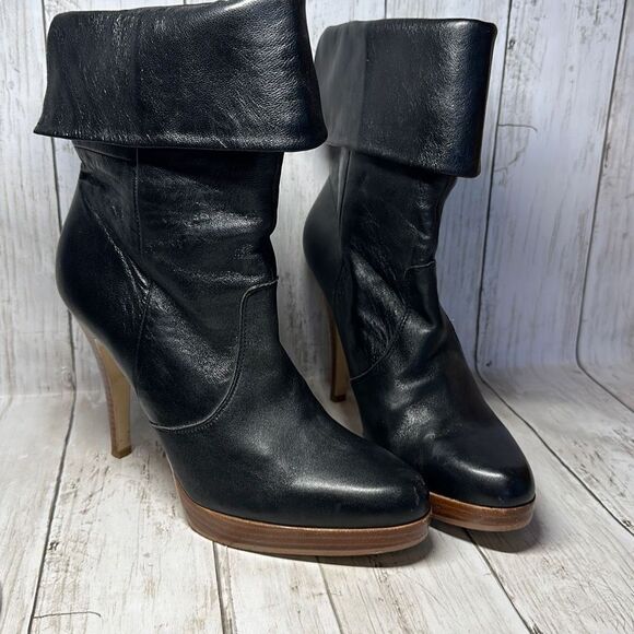 Bakers Black Ankle Booties Heeled Boots Leather Rolled Cuff size 10M