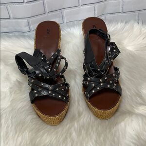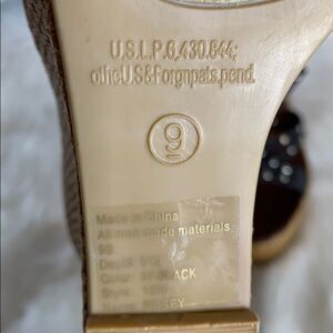 Height of heel with platform is 5.5". In very good pre-owned condition. Normal wear and tear noted, but no flaws or damage. Please review pictures and feel free to ask any questions or for more pictures prior to purchasing.