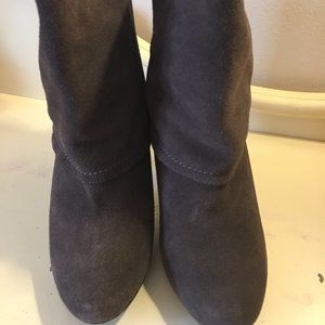 Bakers Womens Stiletto Platform Fold Over Brown (bottom states 57 Gray but it looks brown to me) Suede ankle boots Sz 9.5 B. The boots are pre-owned and are in great condition, Heel 4.5" and the zipper is just for style.