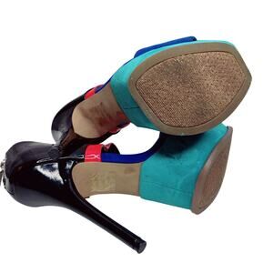 Bakers Color Block Blue Womens High Heel Stiletto Platform Sz 7M Patent Leather