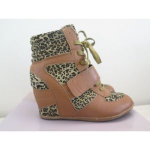 Bakers EW3969 Women's Sz 8 Leopard Print Opposition Strappy Wedge High Top Shoes