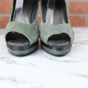 Bakers Gray/Green Suede Leather Peep Toe Stiletto Amber Heels Size 10 Women's