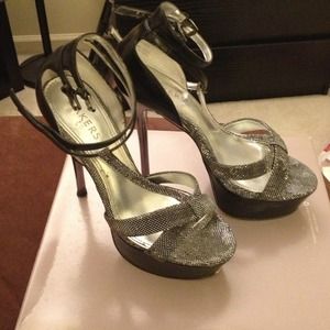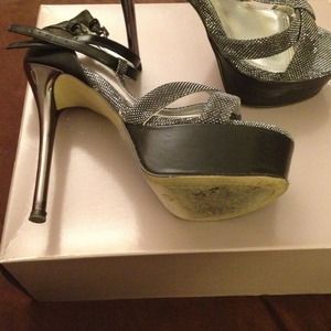 Sky high pumps black and silver they are a true 7 my feet are a little wide so they were a bit uncomfortable wore them 2x leather isn't scuffed and caps are still new.