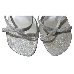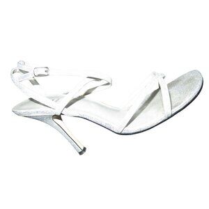 Bakers Shelly Glitter Strappy Metallic Silver Leather Heels size 10