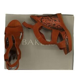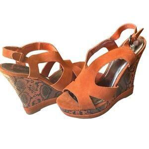 Bakers Snakeskin & Suede Wedge High Heel Open Toe Shoes Sz. 8 in Box Orange