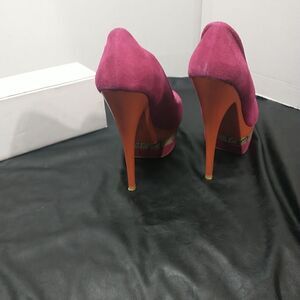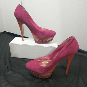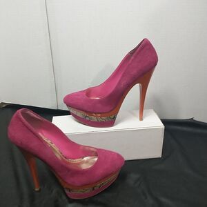 Bakers Woman's SZ 10 M Pink Orange Suede Snakeskin Pumps