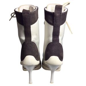 Baker’s Y2K Suede Nylon High Heel Ankle Boots Stylish Beige and Brown Size 8 1/2