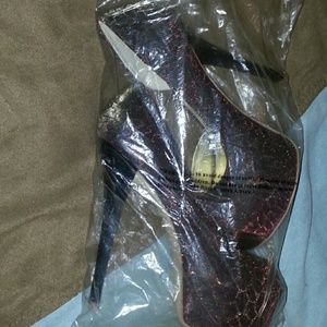 Red and Black cheetah print sorta with a sprinkle of gold to finish the top coat. Gives the shoe a dazzle touch
