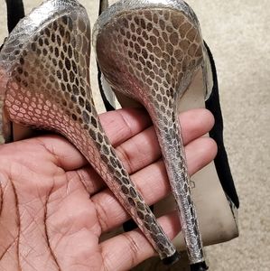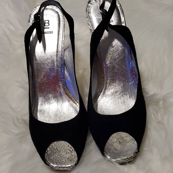 Black and silver slingback from Baker's. Please see pictures and feel free to ask any question.