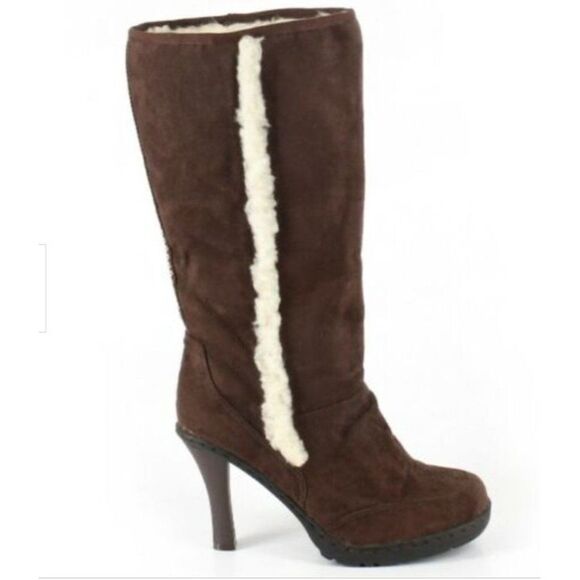 Bakers Eskimo Women's Heeled Suede Boots with Shearling Fur Accents Size 6