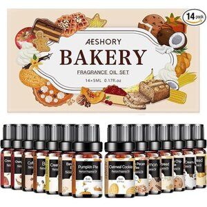🧿🍪【Set Of 14 Bakery Essential Oils】 This essential oils set includes Chocolate Chip Cookie, Coffee Cake, Oatmeal Cookie, Gingerbread, Pumpkin Pie, Brandy, Creamy Vanilla, Cinnamon, Pumpkin Pecan Waffles, Banana Nut Bread, Cinnamon Apple, Cherry Cheesecake, Cornbread, Coconut Cream oil.