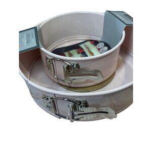 This Master class Bakeware Springform Cake Pan set is new and includes two pink speckled pans, 6” and 9”. Made for baking perfection, the pans ensure easy release and clean up.