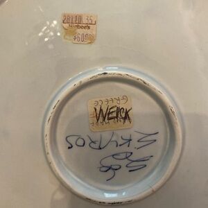 Baking Dish Made in Greece 11.25 inches Wide It is handled Like New and original price tag is $60. Probably Vintage. Tiny chip on edge.