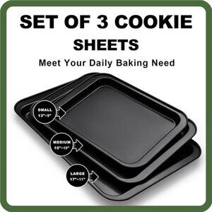 Baking Sheet Tray Set, 3 Pack Cookie Sheet Pan for Oven, Nonstick Bakeware Sets