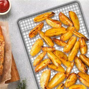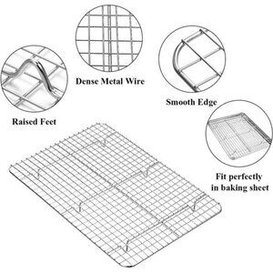 🧿PRODUCT INCLUDES: Including 2 baking sheet 40.7 X 30.8 cm (16.02 x 12.13”), 2 cooling rack 38.7 X 28.5cm (15.24 x 11.22’’), perfect to be used as cookie sheet or baking sheet for your regular oven and toaster oven