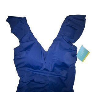 Bal Harbour Swim Blue V-Neck Ruffle One Piece Swimsuit Size 16 NWT Wirefree