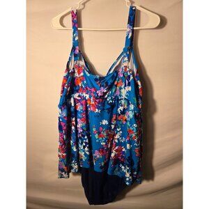 Bal Harbour Womens Plus Size Slimming Swimsuit One Piece Ruffles 22W Blue Floral
