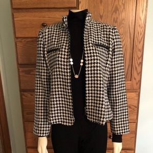 Houndstooth, Front Zip, Fully Lined, Hand Wash/Flat Dry, 72 Viscose/28 Polyester, Zip Detail Faux Chest Pockets