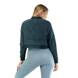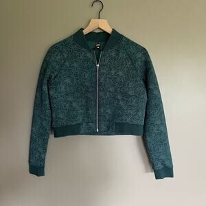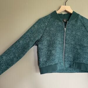 Balance Athletica Flight Crop Bomber Jacket in Deep Sea Size Small Green Floral