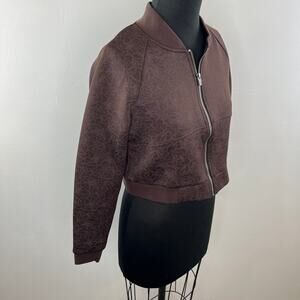 Balance Athletica Flight Jacket Cropped Brown Floral Full Zip Stand Up Collar S
