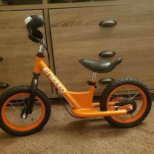 ENKEEO 12 Sport Balance Bike No Pedal Walking Bicycle with Carbon Steel Frame, Adjustable Handlebar and Seat, 110lbs Capacity for Ages 2 to 6 Years Old, Orange
