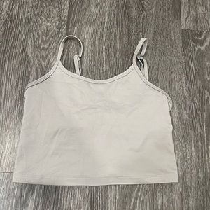 Worn around the house, still in excellent condition! This is a cropped camisole.