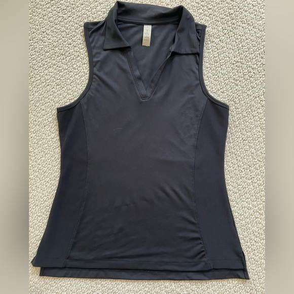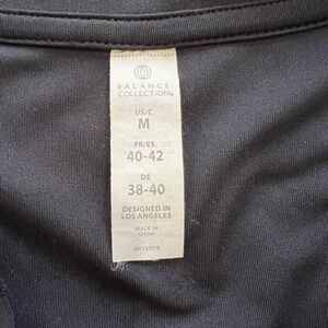 Versatile black athletic tank from Balance Collection. Smooth stretch fabric with a racerback silhouette. Ideal for workouts or casual layering.