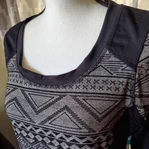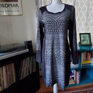 Great dress that can be worn dressed down or up. Black base with gray and black print on front. The inner "tag" is fading, otherwise great condition.