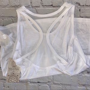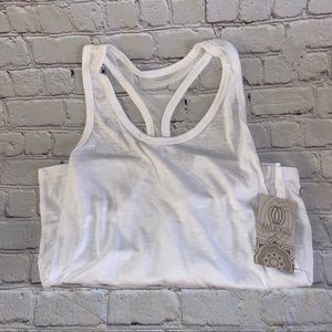 The mesh inset on the racerback of this slub knit scoop-neck singlet boasts mobility, breathability, and style, giving you the freedom to run that extra mile!