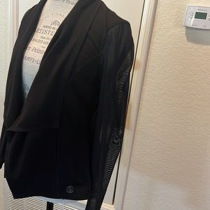 A nice casual yoga cardigan. Draped collar and sheer sleeves and pockets.