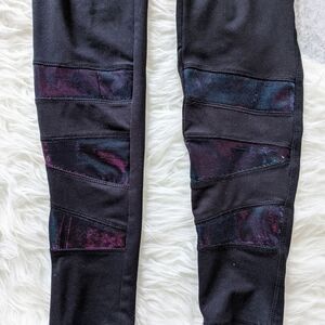 Black leggings/yoga pants with holographic cutouts.