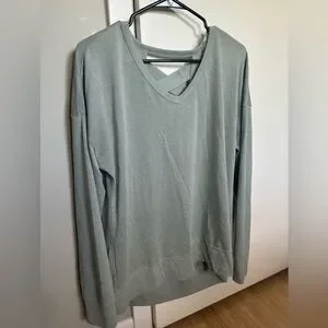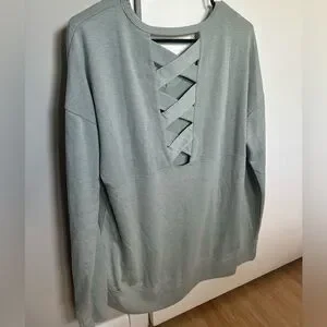 Back has cutout to mid back. Light green in color, very soft. Wore 1x.