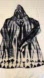 Gathered down the back thumb holes no strings for the hood