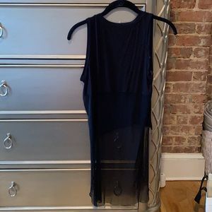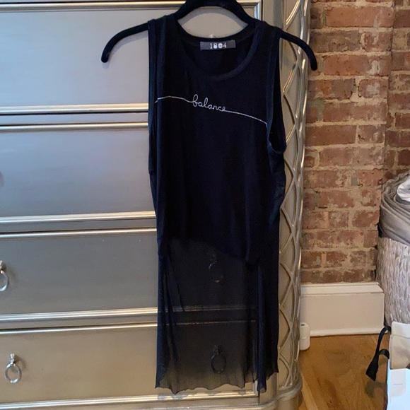 Cropped in the front and long mesh in the back. Purchased from a boutique