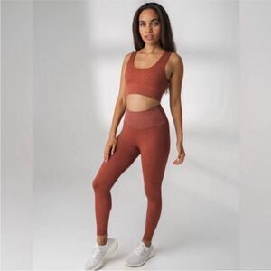 Balance vitality channel ribbed leggings high rise waist rust small s