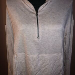 Balance Collection by Marika. Heather French Terry. Half Zip Mock Neck Pullover With Gunmetal Hardware. Kangaroo Pocket, Banded Cuff & Hem. 95% Rayon/5% Spandex. Size: large. Original price: $65.00. NWT