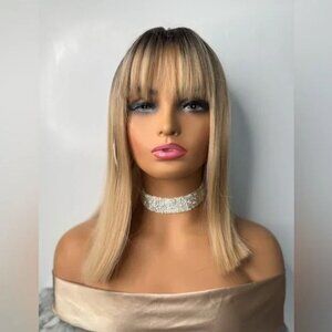 | Ultra Natural Look | Real Hair Feel Description: Achieve a beautifully natural look with this Short synthetic wig in a rich dark roots Blonde shade.