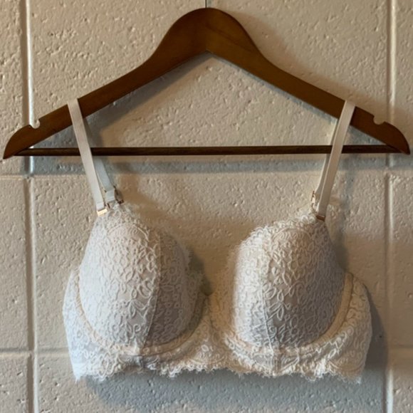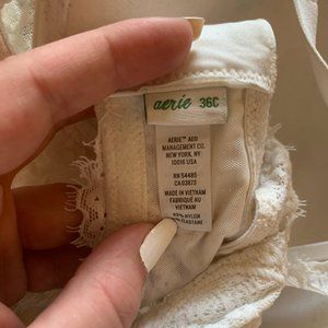 White lace balconette bra from aerie. Lightly lines, straps can be converted from regular to racerback. Only worn a few times, like-new condition.