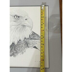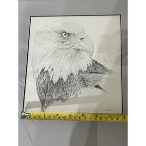 Bald Eagle Pencil Drawing Matted Wood Framed & Signed 18.5x14.25in Frame Size